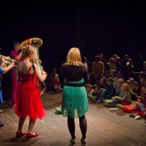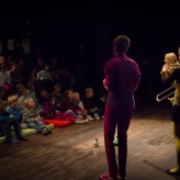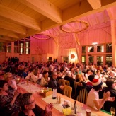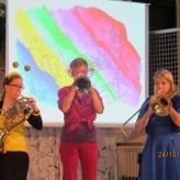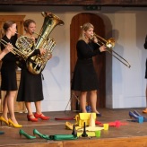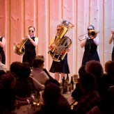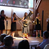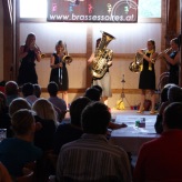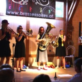 Wie wird es aber plötzlich eng und voll hier! Die Menschenmassen strömen, die Temperaturen steigen, die Veranstalter schwitzen und suchen nach weiteren vorhandenen Sitzgelegenheiten - und entwenden uns dabei sogar die Stühle aus der Garderobe... Bis auf den letzten Zentimeter wird der Raum vollgemacht – alle dürfen kommen, wenn Brassessoires zum Konzert blasen! Es scheint so, als ob sich die ganze Umgebung auf den Weg gemacht hätte, um uns zu besuchen. Oder kriegen wir all die Gäste ab, die zu fußfaul sind, um auf dem parallel laufenden Tanzabend das Bein zu schwingen?