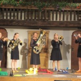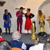 Wir dürfen unser Kindertheaterstück im Schloss Kremsegg zum Besten geben und freuen uns über so viele begeisterungsfähige Zukunftsblechbläser! Wie schön! Und wer weiß schon, welches von den Kindern einmal ganz unbedarft zu uns kam und als baldiger Blechbläser den Raum verließ? Nichts ist unmöglich. Wer der Zauberer Buntinius ist, bleibt allerdings ein Geheimnis...