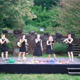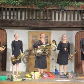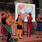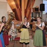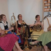 Auch hier wird das Damen-Brass-Ensemble enthusiastisch empfangen und nach ein paar Tönen und Worten merkt man, dass sich bei allen Neugier in Erstaunen und Genuss verwandelt. So nah am Originalschauplatz des "Woodstock"- Bewerbungsvideos spielten wir schon lange nicht mehr! Sogar unser Maskottchen Zottel hat sich auf den Weg zu unserem Konzert gemacht...