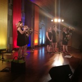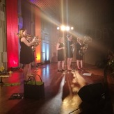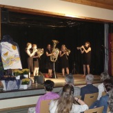 Schön ist es, sich die Bühne mal mit einer Runde Männern teilen zu können. Die Herren entlockten mit feinen Humor und reinen A Capella -Tönen dem Publikum ein Lächeln, wir Damen haben abwechselnd dazu am Blech für gute Stimmung und Schwung gesorgt. Die Mischung war gelungen singende Männer, blechblasende Damen-eine tolle Idee.