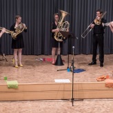 Und wenn wir schon mal da sind, wird die Zeit natürlich genützt. So trieb gleich drei Mal innerhalb eines Vormittags der Zauberer Buntinius in den Coburger Grundschulen sein Unwesen und die Brassessinis pusteten gemeinsam mit den Kindern die Farben in die Welt zurück. Es wurden Wellenmeere erzeugt, wie die Bienen gesummt, Luft in die Tuba gepumpt und gesungen was das Zeug hielt!
