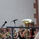 Und zwar so sehr, dass auch die Klimaanlange fast nicht mehr mit uns mithalten konnte. Bei diesem Konzert wurde uns erstmals der tiefere Sinn der brassessoiresfarbenen Schweißbänder an unseren Handgelenken bewusst, mit welchen uns unsere Posaunistin Katharina schon vor längerer Zeit beschenkte und welche bisher nur getragen wurden „weil sie halt farblich zu uns passen“.