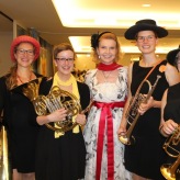 Brassessoires ist seit Juni wieder als reines „Frauenquintett“ unterwegs. Unsere Jungmama Katharina ist aus der kurzen Karenz mit ihrer Tochter Sarah wieder ins Konzertgeschehen eingestiegen. Und da geht’s gleich auf groooße Reise für die kleine Sarah. Die stolze Godi Barbara war dankenswerterweise als Babysitter mit dabei und Sarah - wie übrigens alle Brassessinis - sehr brav während dem Konzert.