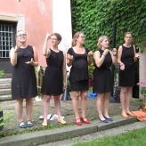 Nach unserem Auftritt in München hatten wir dieses Mal wieder eine etwas größere Reise vor uns, und so tuckerten 5 Brassessoires incl. dem kleinen Brassessini Sarah aus 3 verschiedenen Himmelsrichtungen per Bahn dem Schloss Weilburg zu. Die Vorfreude war groß, wo wir es doch so sehr lieben, Burgen und Schlösser und andere Räumlichkeiten zu bespielen, in denen wir uns gleich wie Prinzessinnen fühlen! Der Wettergott war uns diesmal durchaus wohlgesonnen und das Konzert konnte wie geplant im Innenhof des wunderschönen Schlosses Weilburg stattfinden.