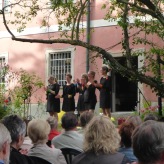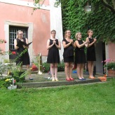 Von Frau Kielhorn, welche die Wurzer Sommerkonzerte seit 1988 veranstaltet, wurden wir aufs Herzlichste empfangen. Da uns der Wettergott wohlgesonnen war, konnte das Konzert nach einem gemeinsamen Essen, wie geplant, Open – Air stattfinden. Außerdem freute es uns sehr, dass eine Konzertbesucherin an diesem schönen Tag ihren Geburtstag feierte und unser Konzert zum Anlass nahm, es gemeinsam mit ihren Gästen quasi als Geburtstagsfeier zu besuchen.