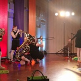 Nicht nur, dass wir das erste Mal „so weit oben“ in Deutschland spielen durften, (das hat bei den Einheimischen für Gelächter gesorgt, weil diese sich noch nicht so weit nördlich empfinden, wie wir „Südländer“ das getan haben), nein, auch der überaus herzliche Empfang hat uns große Freude bereitet. Wer kann schon behaupten eine ganz eigene wunderbar abgestimmte Bühnendeko in allen Brassessoires-Farben zu bekommen.