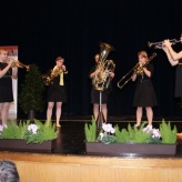 Isabella durfte wieder ein wenig den heimatlichen Vorteil des Mühlviertels genießen, sie unterrichtet zudem in Neufelden, aber auch die vier anderen Brassessoires fühlten sich pudelwohl im Veranstaltungssaal. Mit toller Akustik und Technik ausgestattet bespielten wir das Publikum von der Bühne aus, die schon andere namhafte „Brasser“ und „Blecher“ vor uns betreten haben.